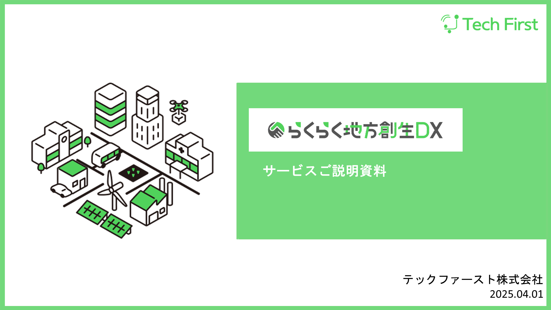 DX導入をしたいけれど、「何から始めれば良いのかわからない」「人手が不足している」「予算がない」こういったお悩みはありませんか?テックファースト株式会社はこういった課題を抱える自治体のDX導入支援を様々な側面からしたいと考えています。弊社が提供する「らくらく地方創生DX」は、地域DXを総合的に支援するサービスです。コンサルティングからシステム開発・設計・構築・最適化まで様々な職種のスペシャリストがお客様のDXを多角的にサポートします。総合的な提案やアドバイスによって地域DXの“敷居”を下げ、誰でも気軽に使えるデジタルサービスを開発し、住み続けたくなる街づくりを目指します。
