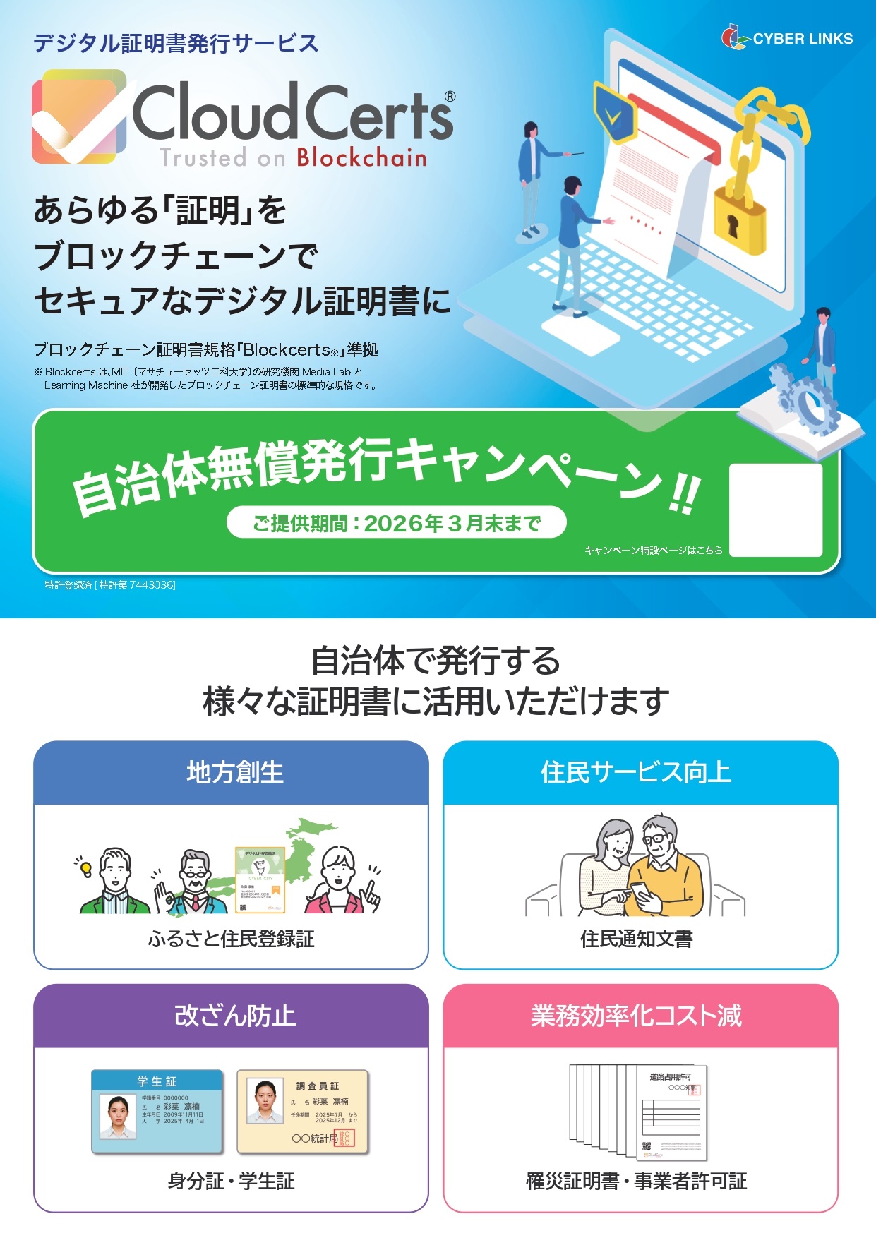 【無償発行キャンペーン実施中※R7年度末まで】デジタル証明書発行サービス「CloudCerts®」で、あらゆる「証明」をブロックチェーンで改ざんできないデジタル証明書に!