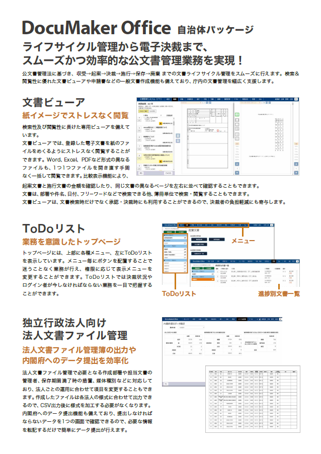 ◆公文書管理パッケージシステム「DocuMaker Office」パンフレット