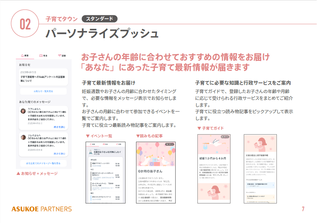 「子育てタウン」は、利用者ニーズに応じて進化する拡張型アプリです。電子母子手帳、ひとり親向け機能ほか、今後も新機能をご提供していく予定です。