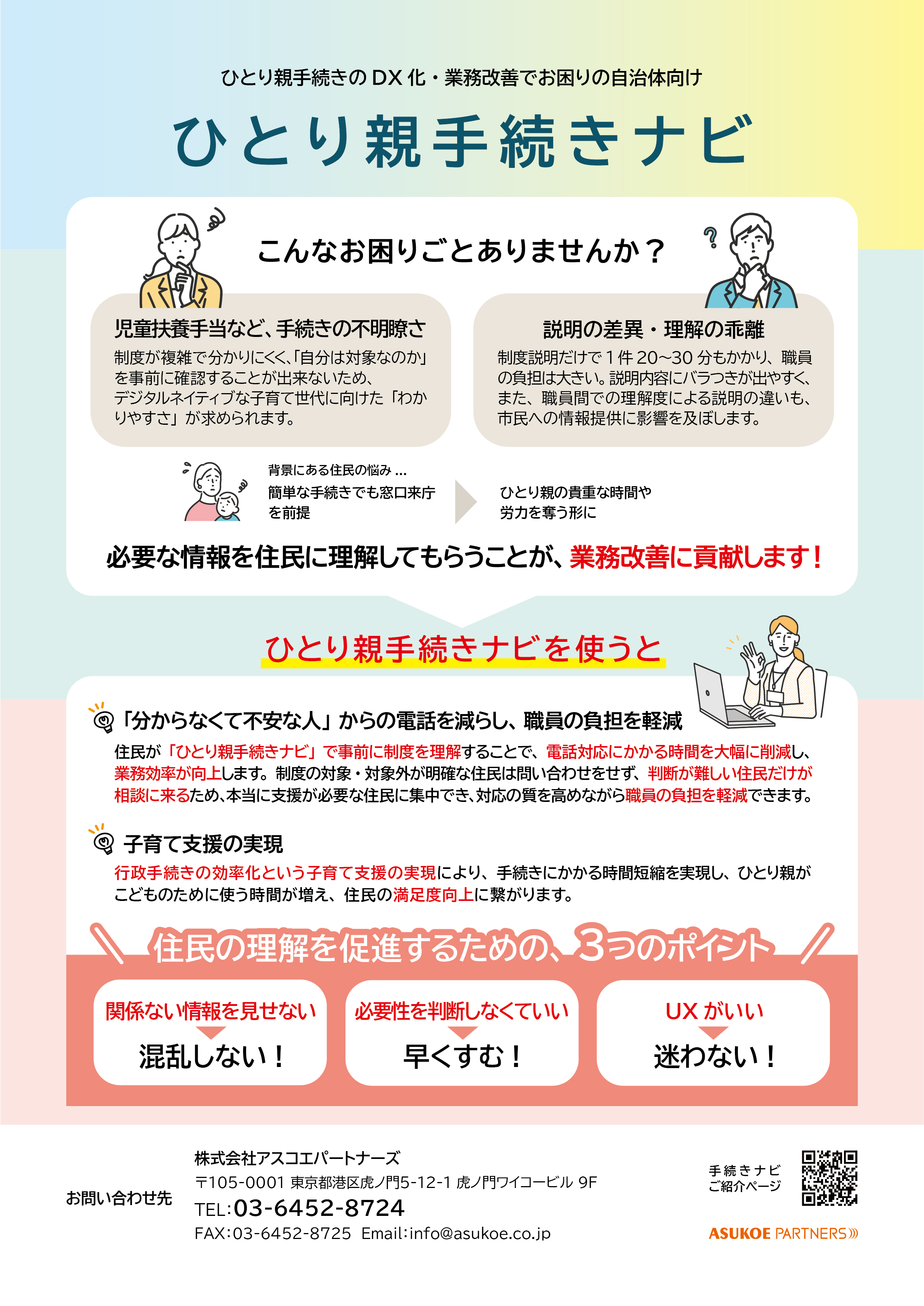 ひとり親家庭に”迷わせない”支援を。問い合わせ削減・業務効率化で職員負担も軽減