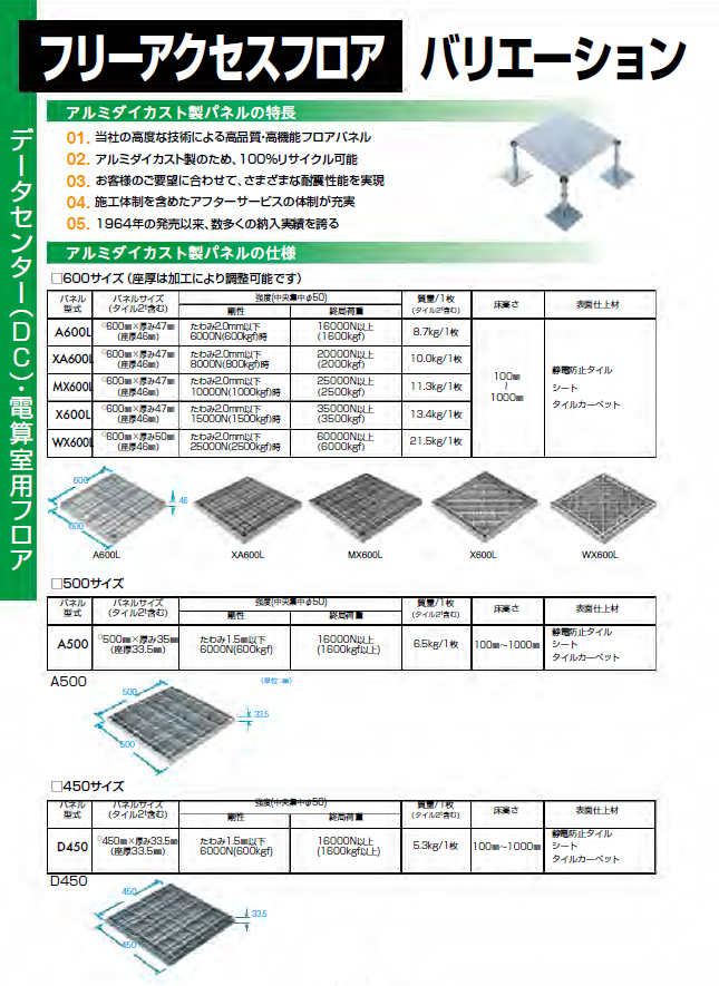【製品ラインアップと特長】◎アルミダイカスト製フロアパネルシリーズ