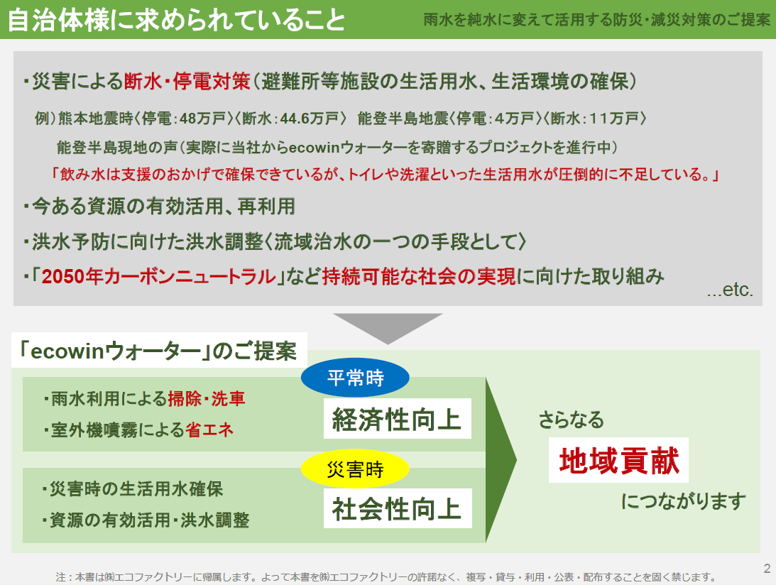 パッケージ提案:輻射空調「ecowin」と併せて導入することで、室温調整と水利用の両面から「最強の避難所」を実現します。