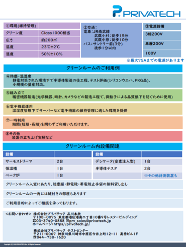首都圏にあるクリーンルームなのでアクセスが容易