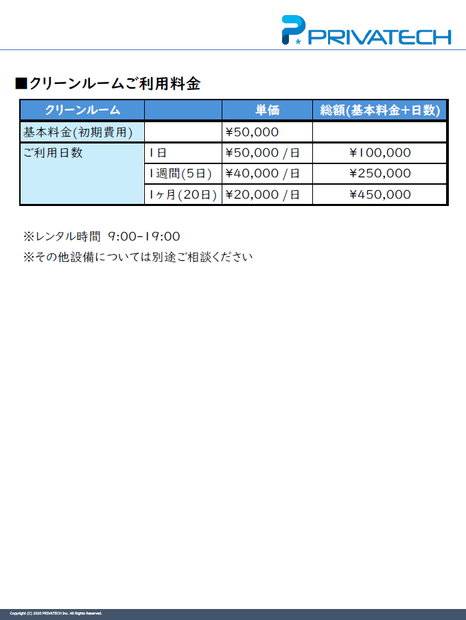 クリーンルームのスペースレンタル