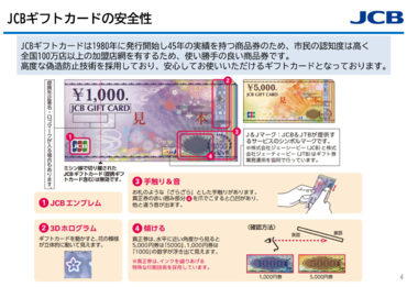 また、高度な偽造防止技術を採用しているため、安心してお使いいただけるギフトカードとなっております。(詳細は資料をご確認ください。)