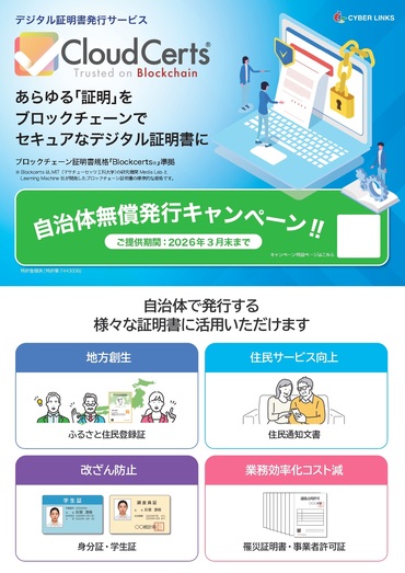 【無償発行キャンペーン実施中※R7年度末まで】デジタル証明書発行サービス「CloudCerts®」で、あらゆる「証明」をブロックチェーンで改ざんできないデジタル証明書に!