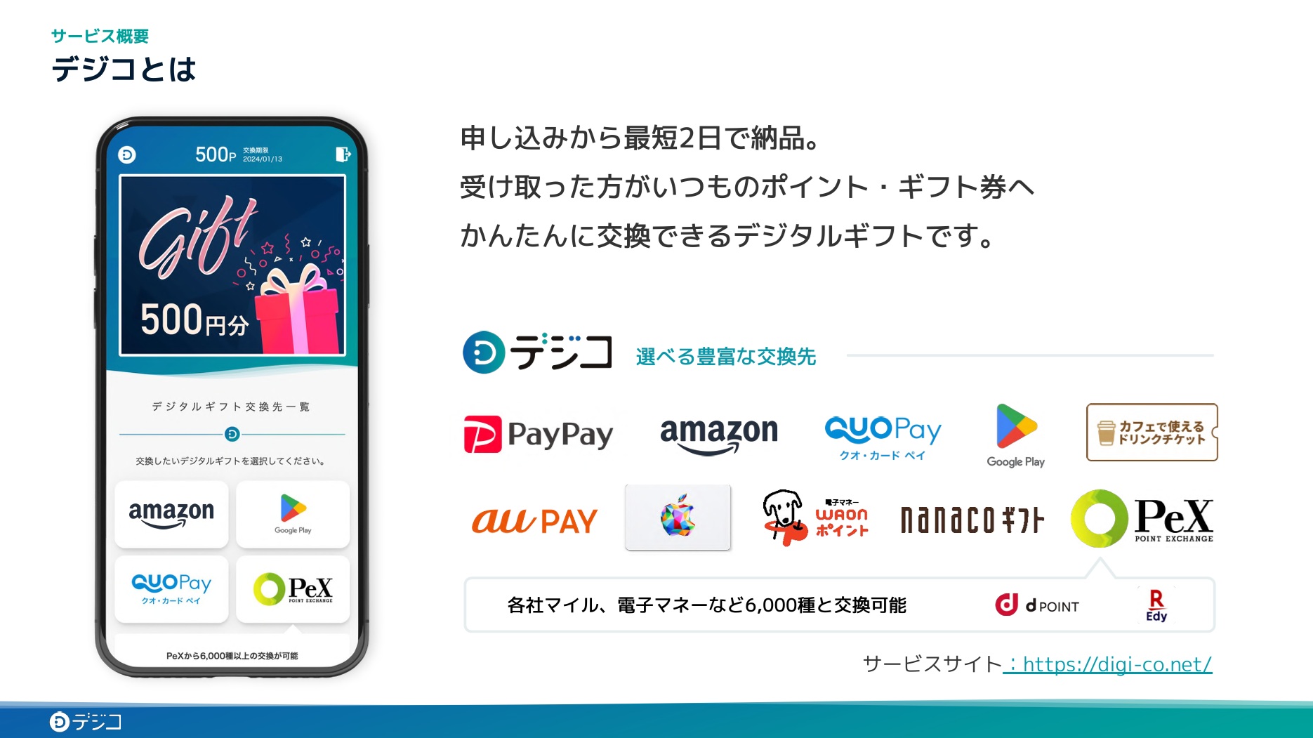 現金・紙商品券に代わる、新しいデジタル給付の選択肢として、デジタルギフトサービス「デジコ」をご提案します。デジコは、給付金、補助金、広報キャンペーンの景品など、多岐にわたる施策で活用されています。